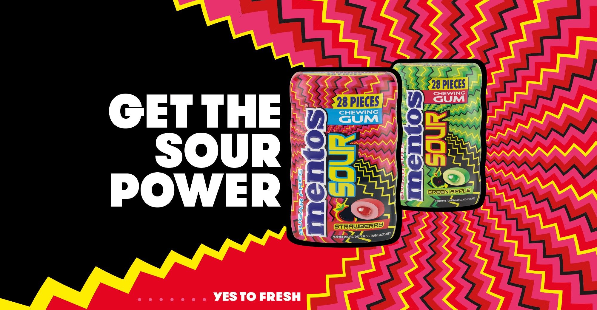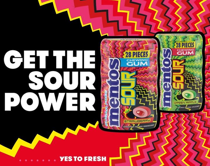 Nieuw: Mentos Sour Gum! De kauwgom met een zure bite die de zintuigen doet prikkelen. Een verrassende sensatie door de zure coating en de vloeibare vulling met fruitsmaken. Verkrijgbaar in twee varianten: Mentos Sour Gum Strawberry en Green Apple. In een pocketsize verpakking met 28 kauwgoms. Handig voor onderweg!